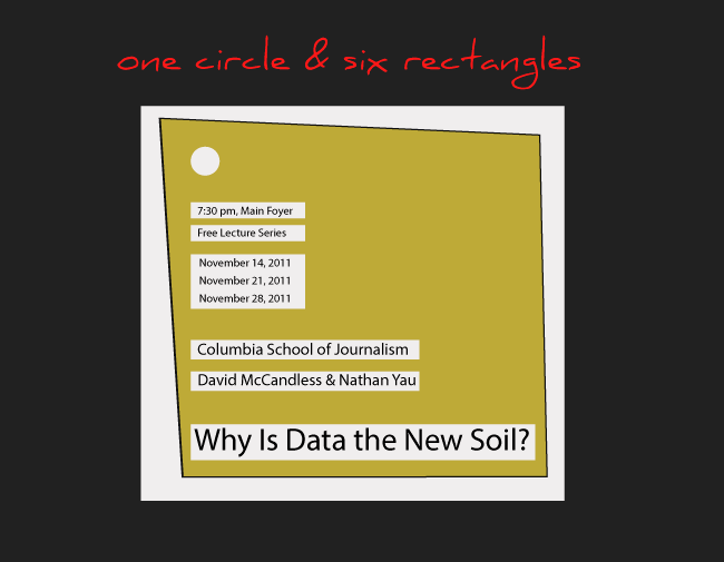 The grid exercise described in the first paragraphs of this post is a looser version of the basic exercise (with various levels of restrictions) that Kimberly Elam develops in her book (course) on the grid and graphic design, Grid Systems, from which the quote above is taken. (3) The red rectangles represent blocks of text and the circle is a wild card.